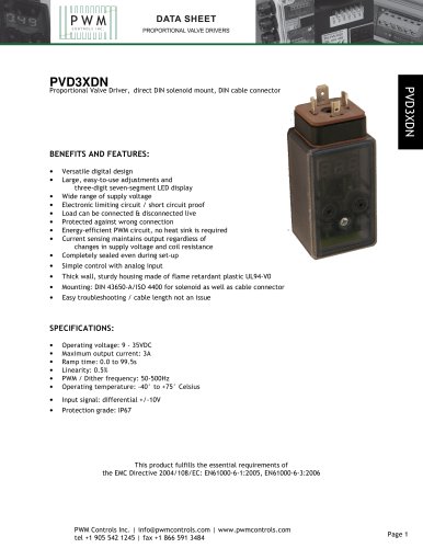 Proportional Valve Driver, direct DIN solenoid mount, DIN cable connector