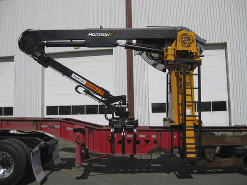 The Horizon Loader completes Rotobecs line of truck-mount loaders with a larger lift capacity. It is used in various applications, including waste removal and the loading and unloading of logs and rail ties.