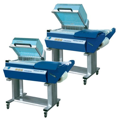 The machine works with thermo-sealing and shrinkable films such as PVC (BLUE FILM) or polyolefin films (GREEN FILM GOLDEN FILM). The machine is made according to CE rules and They can be used also to make plastic envelopes. The equipment is Easily transportable and the machine stand is equipped with wheels on request. It reduces energy consumption with Unit-counter included.
