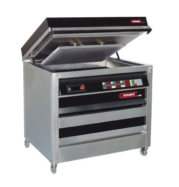 For medium and large productions Comec Italia designed the series BR SV, with the models BR35SV, BR50SV and BR70SV. Unlike manual devices, with this type of photoexposures is possible to perform all the operations to engrave a photopolymer cliché with a single machine, which includes UV exposure chamber with high efficiency vacuum pump, steel developing tank with thermostat and rotating magnetic plane, ventilated hot air drying oven. The models BR50SV and BR70SV are also equipped with additional UV lamps in the oven, for a more rapid drying of the cliché.