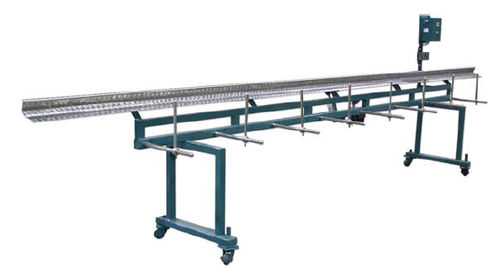 CDS offers pneumatically-activated collection tables, motorized conveyor units, and coil winders that securely collect a broad range of plastic extrusion applications. Our rugged and reliable pneumatic tilt tables can quickly move material into a collection rank or bin for easy pick-up. The takeaway conveyor moves light profiles off the end of the downstream line, and deposits them into catch bins using either compressed air bursts or a mechanical arm.