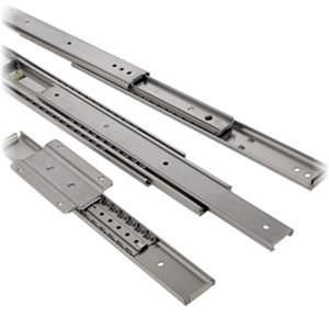 HTS line of telescopic ball bearing slides are quiet, rigid under extended loads, offer smooth motion and contain 5 different series from super slim lightweight to heavy duty slides, capable of carrying 280 kg. They can be ¾ travel, over travel and both sides travel versions with non-disconnect, lever disconnect and lock-out options. Available in many lengths, they are of high carbon steel with bright electro zinc plated finish and hi-lo temperature grease. They have center cut cold rolled steel and temperature range from -40F to +130F. They are used for IT appliances, automation, medical equipment, fire and banking equipment.