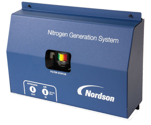 The Nordson Nitrogen Generation System provides a consistent and efficient supply of 95-99.5% pure nitrogen gas. The system requires only a supply of clean, compressed air, and “gas in†and “gas out†connecting tubes. An optional nitrogen booster is available to raise gas pressures if needed. Nitrogen gas is important in the process of producing polyurethane (PUR) hot melt adhesives.